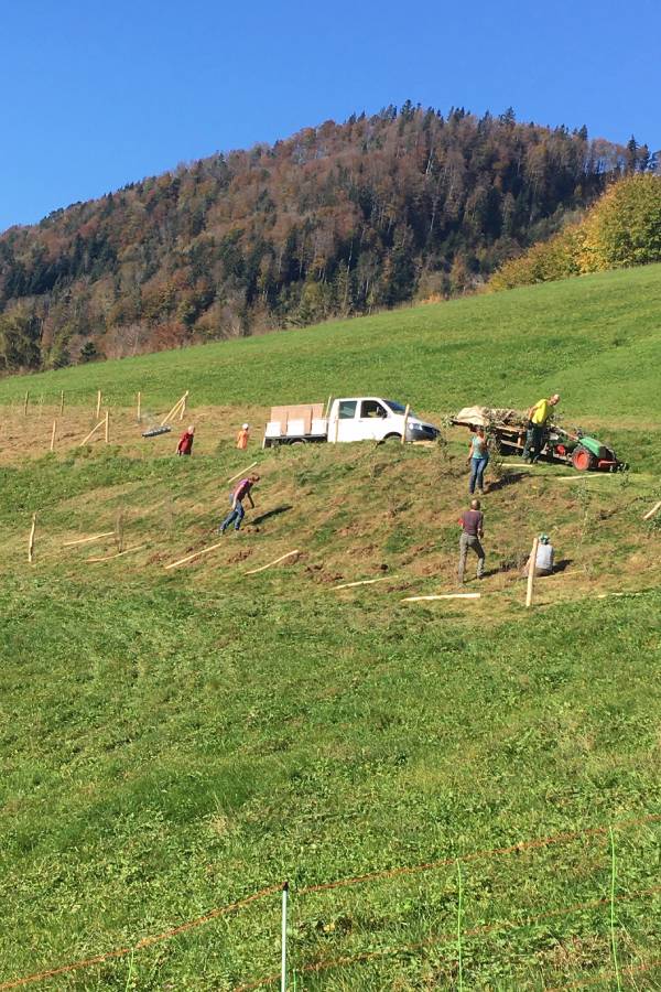 Les plantes livrées sont à racines nues. Celles-ci n’ont pas le droit de devenir sèches. Creuser le trou de plantation suffisamment profond qu’il ne soit pas nécessaire de comprimer les racines. Bien arroser les plantes pour un certain temps ; selon la situation, protéger contre l’abroutissement et la frayure du gibier.